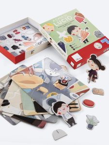 Ispirato agli albi illustrati delle avventure di Lucio, questo gioco educativo favorisce la comprensione e la produzione del linguaggio, l’arricchimento lessicale, l’uso delle preposizioni semplici e articolate e l’appartenenza semantica. Esplora la casa di Lucio, divertiti e impara!