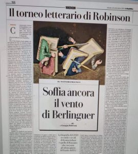 Eppure il vento soffia ancora, il libro sugli ultimi giorni di Enrico Berlinguer che Piero Ruzzante ha scritto per UTET libri con Antonio Martini, vince il concorso letterario dei circoli delle lettrici e dei lettori di Robinson di Repubblica nella categoria biografie. Grazie a tutte e a tutti e come dice il titolo di Robinson “Soffia ancora il vento di Berlinguer “.
